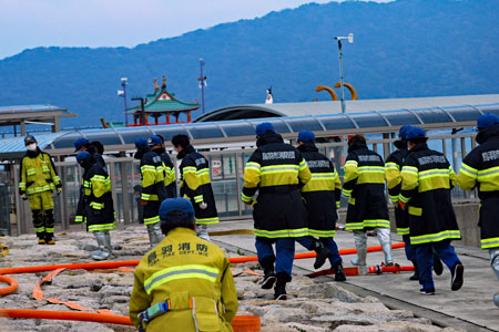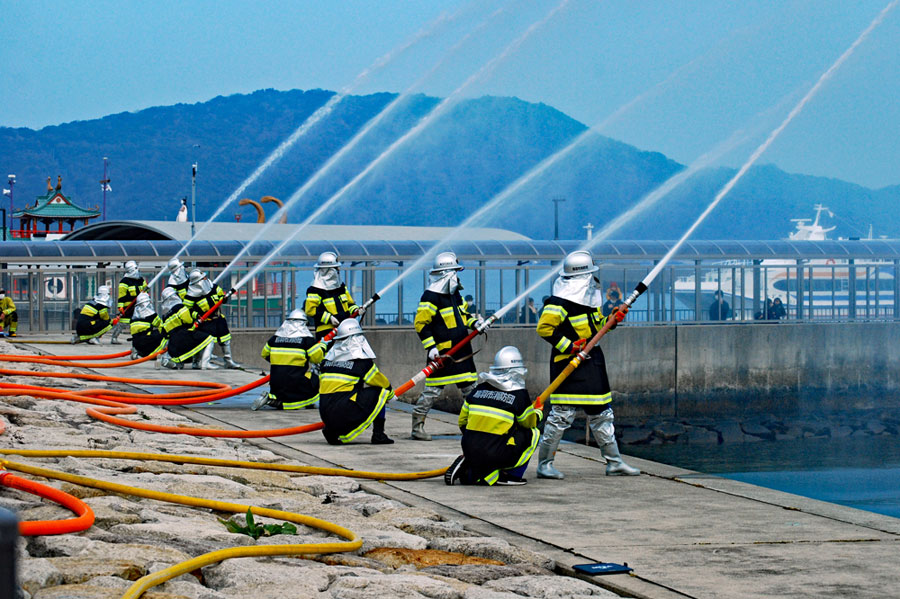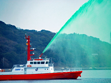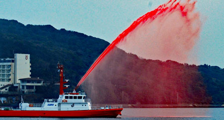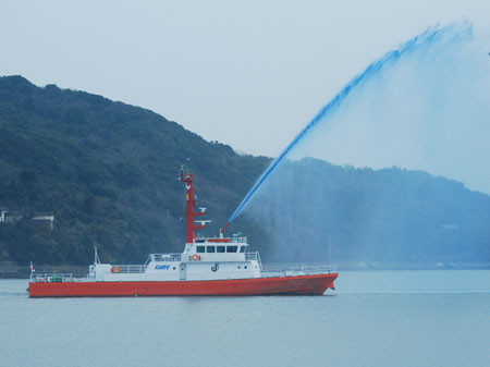 曇天ながら新春恒例の消防出初式が行われた。鳥羽湾では海上から、陸上からも一斉に祝賀放水あり又県の防災ヘリコプターによる訓練展示が行なわれた。何年か前この消防の風景を見たことがあっても初めて見たような新鮮さがあり心打たれるものがあた。日差しの良い梅の木に一輪の花のほころびを見つけた。確かに春は動き始めている。