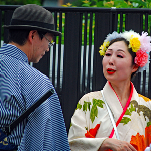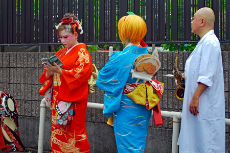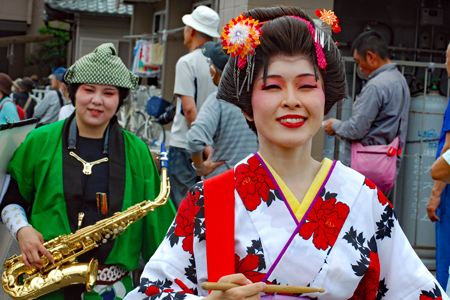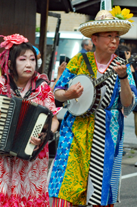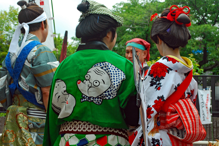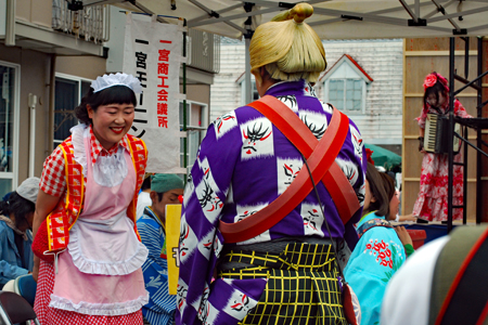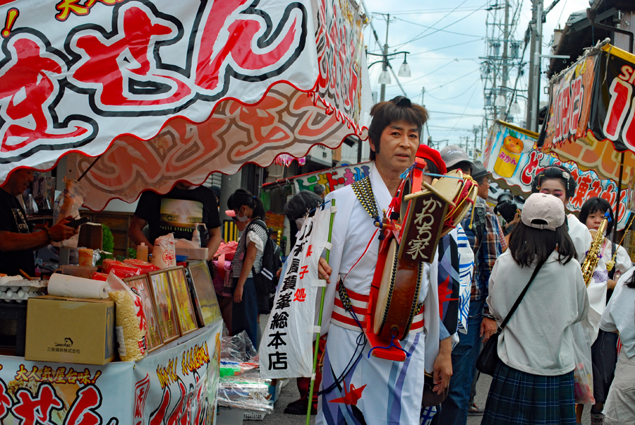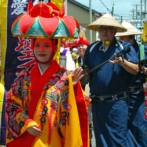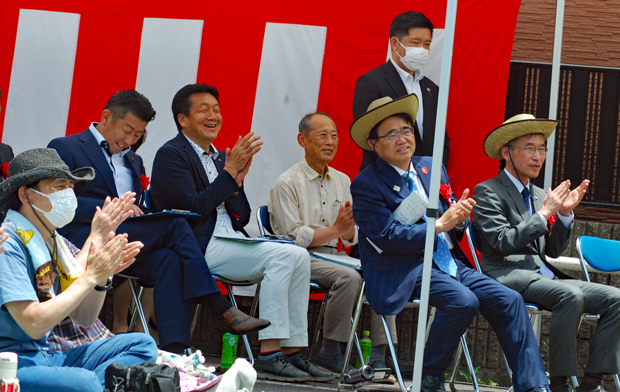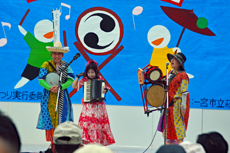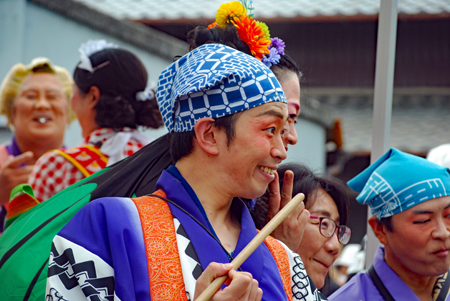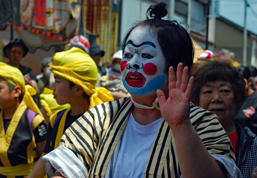 | 写友のお誘いを受けて初めての祭りに連れて行っていただいた。年と共に「何でも見てやろう」という精神は益々旺盛で貪欲になってきている。残された時間が少なく終章の迫り来るのをひしひしと感じているせいか?、、、JRから乗り換え乗り換え萩原駅に着いた。近年電車に乗ったことがないだけに駅名や景色が珍しく興味深い時間だった。幼い日ごくたまに出会ったチンドンやの風景がセピア色となって脳裏をかすめた。時代の進化は人間の退行とひきかえに進化しつつあるように思えてならない。時代の進化と人間の進化の足並みがうまく揃う時代がくることを期待したい。車窓は麦秋の最中であった。(舞台では、大村知事さんの挨拶があった。) |
