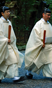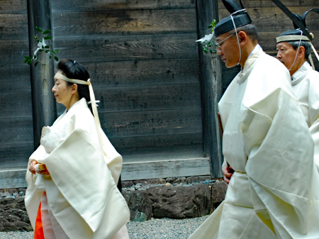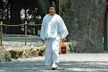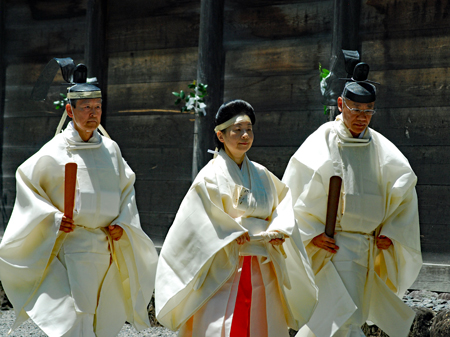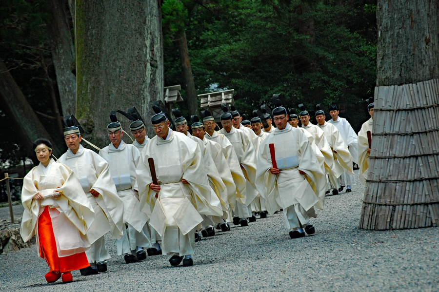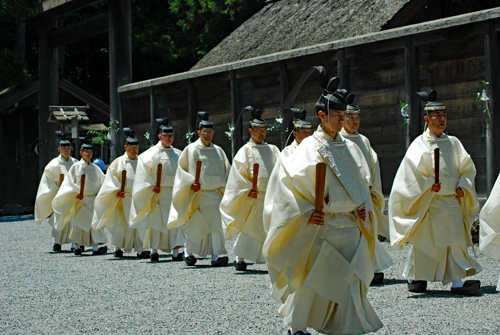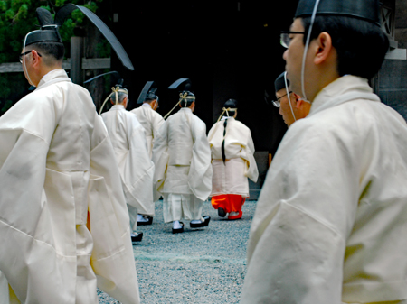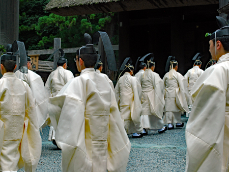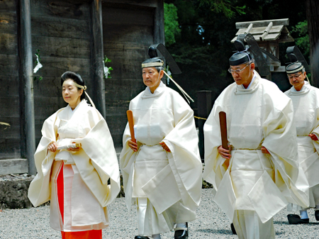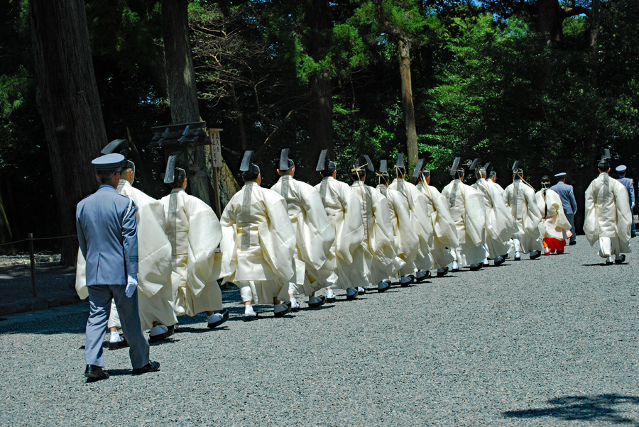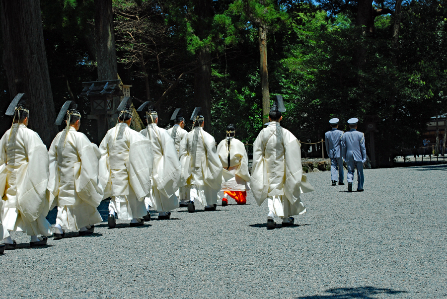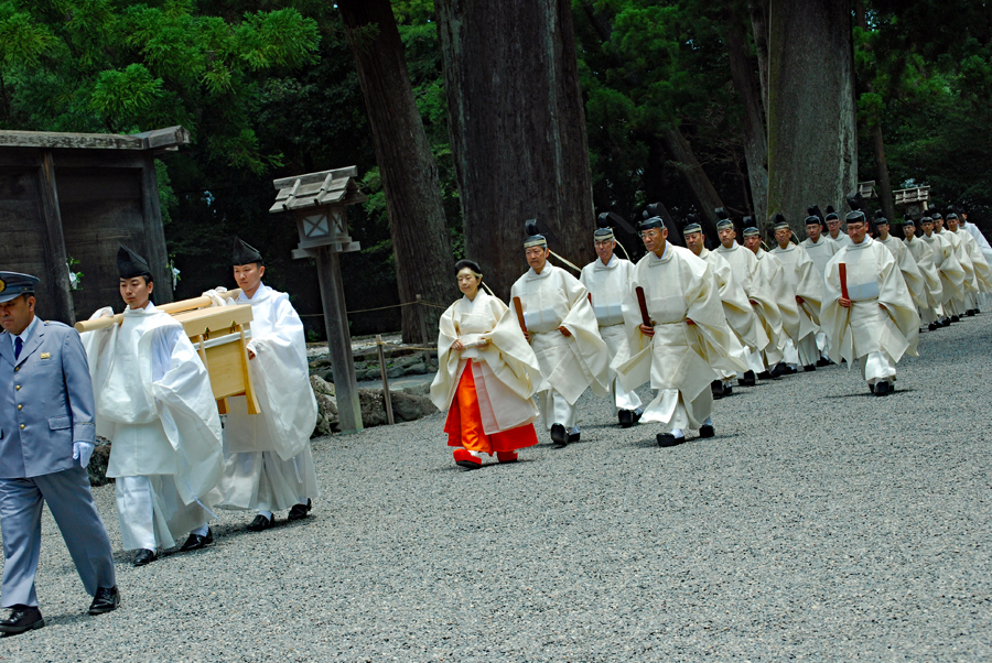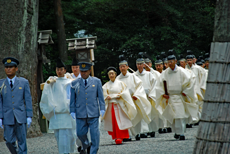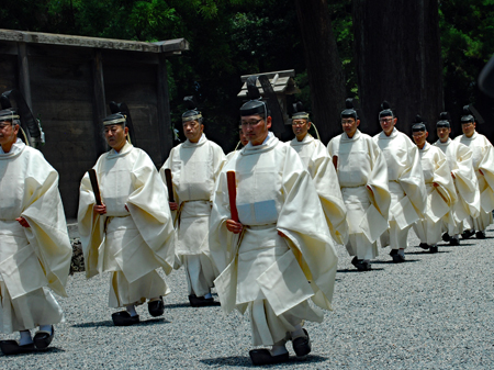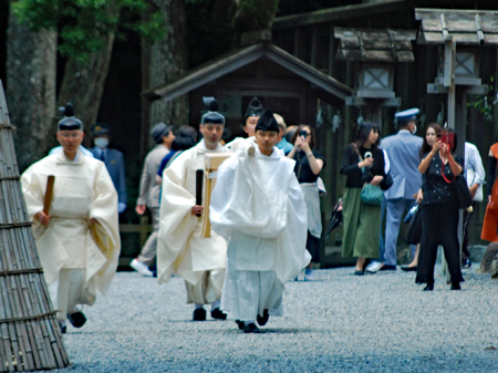 梅雨の晴れ間の好天の今日、外宮さんは月次祭・奉幣祭が行われた。吹く風は爽やかで今回は祭主「黒田様」がお見えで赤い袴姿が青空に映えて一層眩しく美しい。その上静かで華やかさを秘めていて親しみやすく心の中にふんわりとした印象を残して見事でした。暗いニュースばかり続く今日この頃一服の清涼剤を与えていただきました。