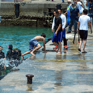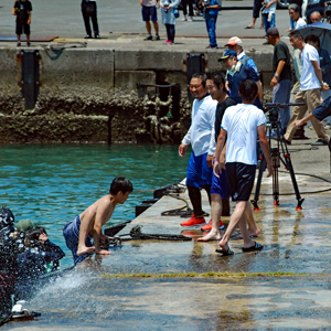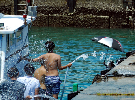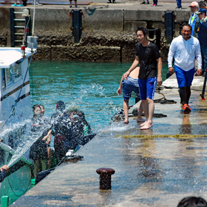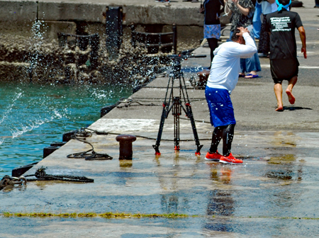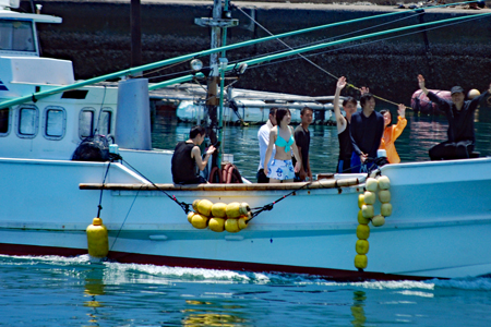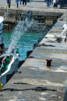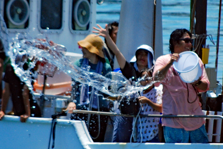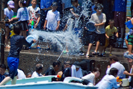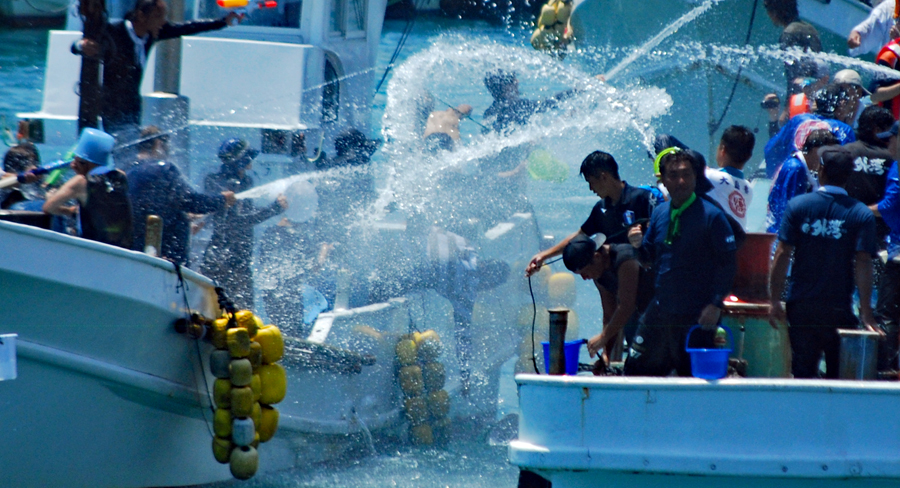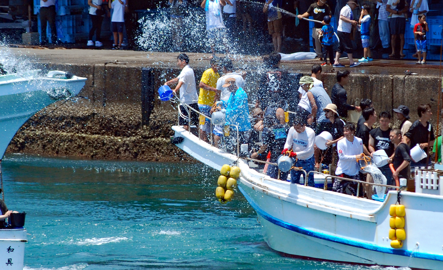 | AM9時過ぎ和具へ向かう。800年の歴史を持つ和具の潮かけまつりに出かけた。海のそばにいるせいか昨日よりは暑さを感じさせなかった。実父の生家が和具で幼いころから幾度となく父に連れられてこの地を訪ねているがこの祭りは今回で2回目であり写真のサークルに参加するようになってからである。身近にありながら知らないことがあまりにも大過ぎることに今さらながら気づかされた。今日も又「今日」という日に出会えたことに感謝しながら「頑張らなくっちゃ」と思いつつ帰宅、、、 |