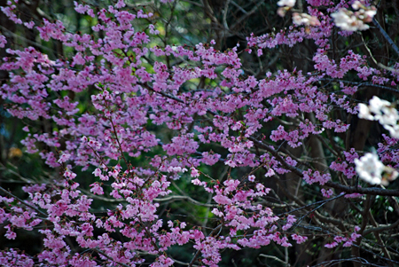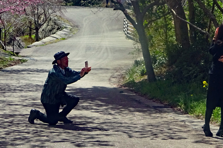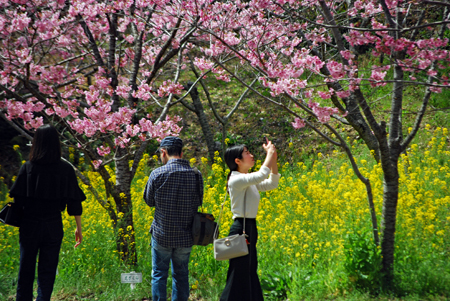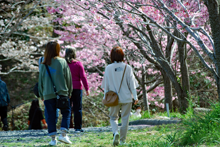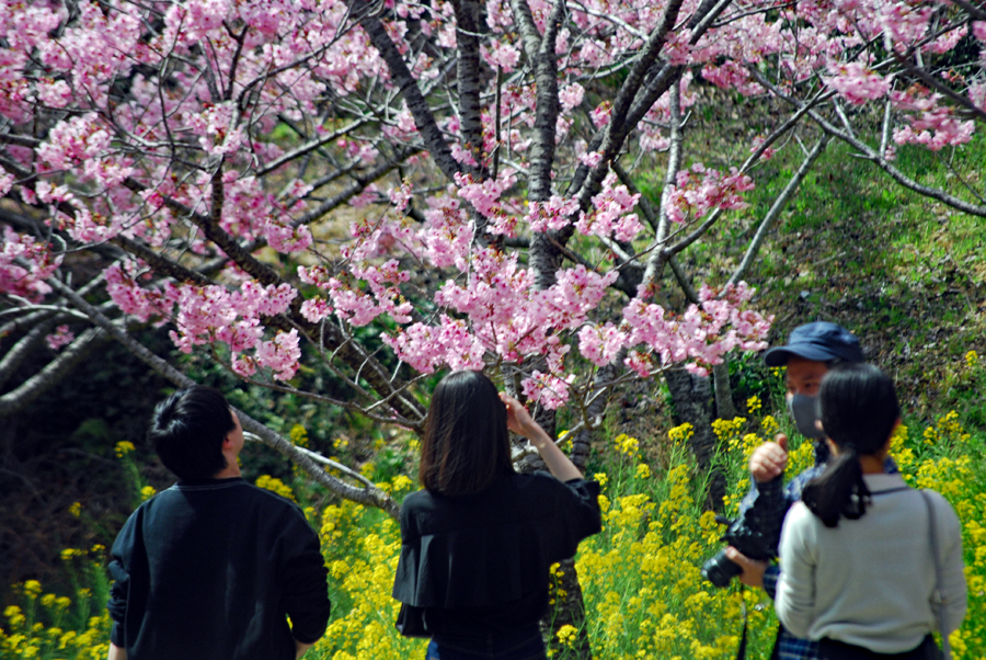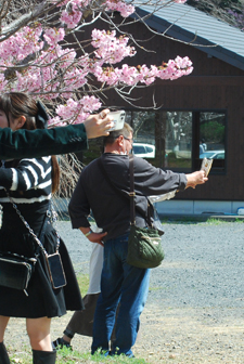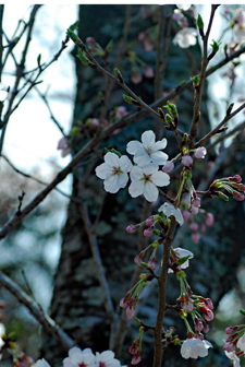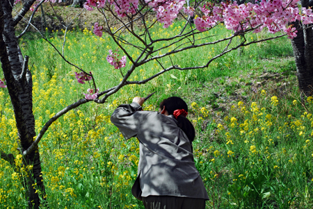 染井吉野が間もなく満開とのニュースが盛んに流れだした。近年になく暖かい日が続いて桜ものんびりしていられない気分だろう。いつも眺める山々はパッチ枠状に彩られ眩しいほどに明るい。毎年訪ねる横山は早くも沢山の人でにぎあっていた。