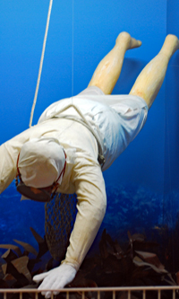 | 施設にいるたった一人の姉に面会すべく家を出た。十数年ぶりに会う姪とも再会できた。わずか15分の面会時間だったが元気そうで少し安心した。パール道路を通るとAM11;00前だったので多分開店前だったのか「牡蠣食べ放題」の店は道路にはみ出て列を作っていた。海の博物館では「海女と工芸」展が開催されていてその作品を興味深く鑑賞させていただいた。女子美大の学生と教員と鳥羽の海女さんで写真家の大野愛子氏によるコラボレーションの作品展です。私が行ったとき観光バスが3台と他沢山の車もついていて段々と人々の旅行形態に変化が出てきていることを実感した次第です。 |