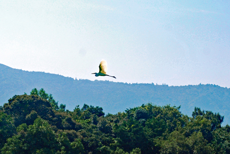 Aスポーツ少年と白鷺 朝熊山麓公園