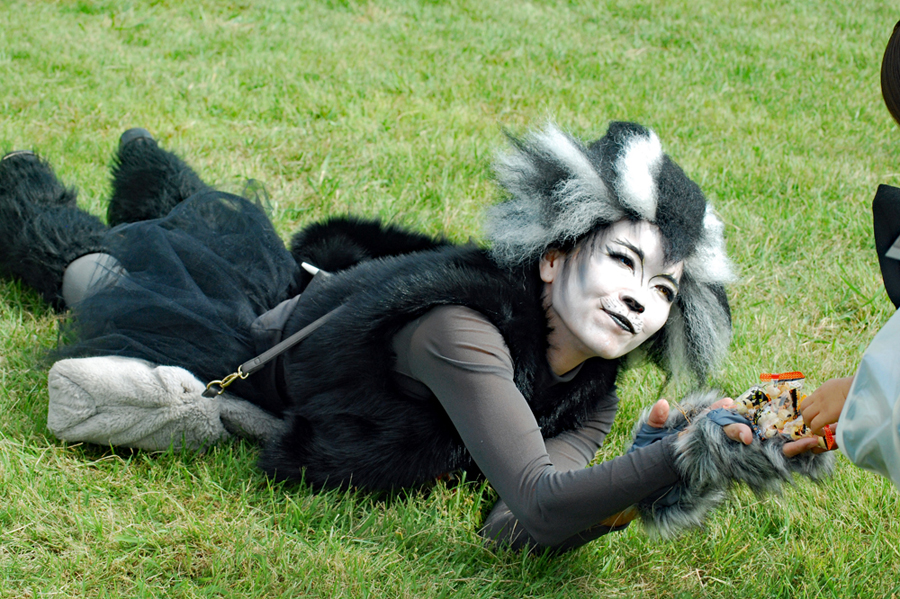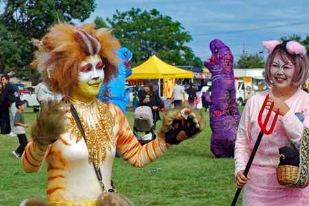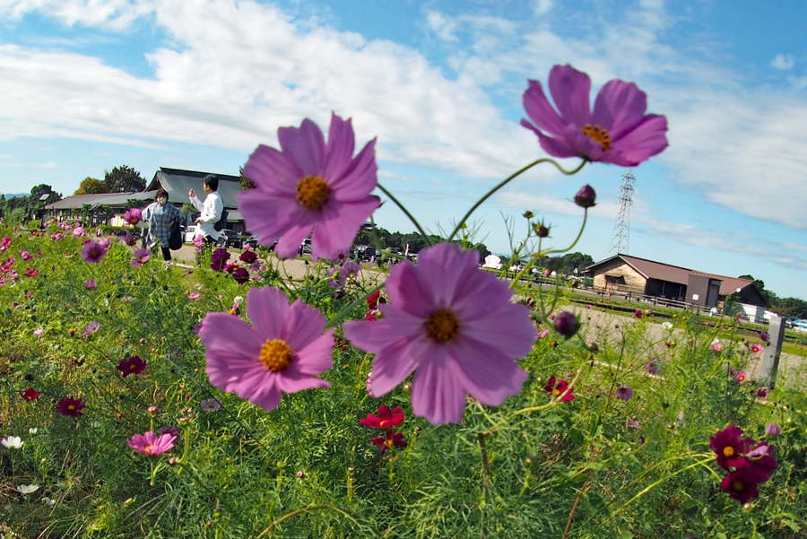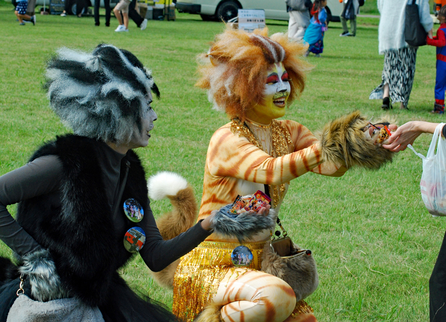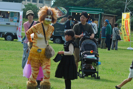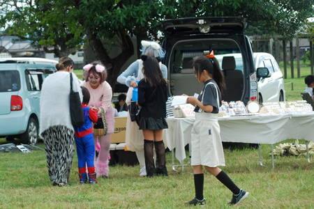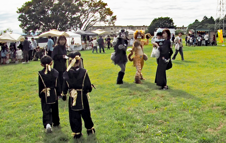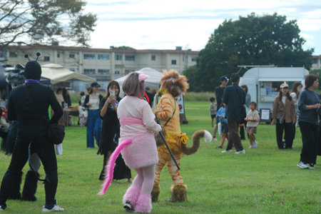 写友に明和の電車の通る脇のコスモスが咲きはじめていると教えていただいた。娘宅へ行く途中寄ってみると思いがけづハロウィンパーティーの真っ最中で沢山の店や仮装した大人、子供で大変にぎあっていた。空も高くきれいな雲が一層祭りを盛り上げているように見えた。