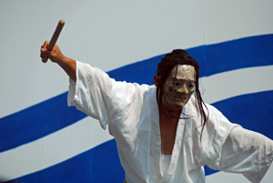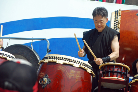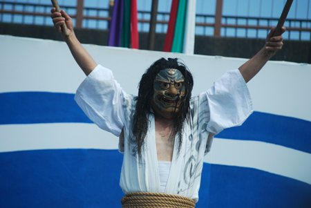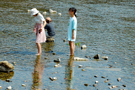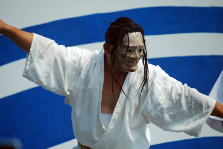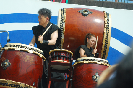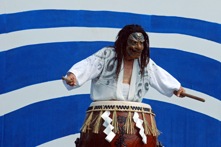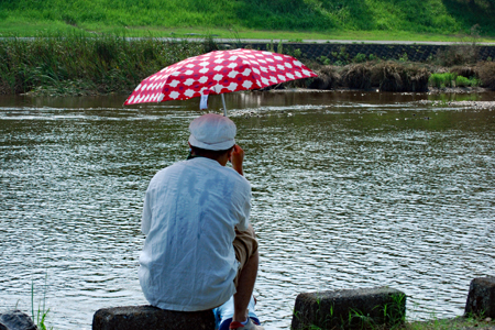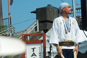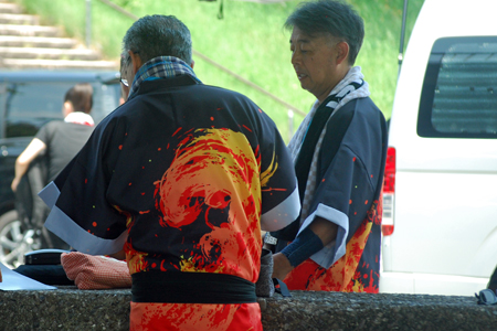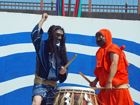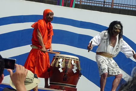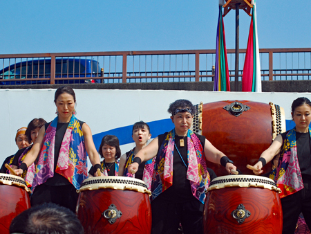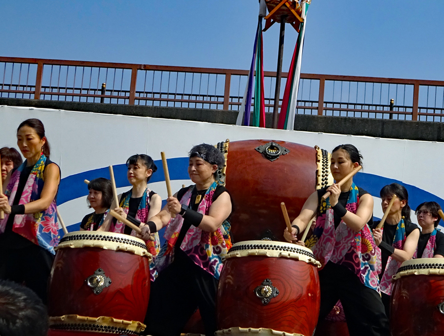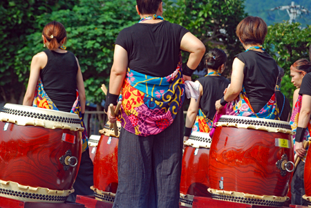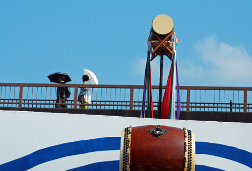 | 昨日から始まっているこの太鼓祭りをAM10:00の部を見たくて出かけた。まだまだ真夏並みの暑さで熱中症を用心して12時には帰宅することとした。遠く石川県や東京、大阪等々10県ほどから参加しておりほんの一部を見ただけで帰ることを決めた。人間の作り出す音はあまりにも美しく勇壮で聞く者の胸を締め付け、時には涙さえ催させてくれる。川面で水遊びしている子供たちにも力強い迫力ある太鼓の音は届いたのかしばし遊びの手をやめ立ち上がってくる子もいた。吹き渡る微風にのって太鼓の音が体内で刻ざまれ鼓動にも似て聞こえ続けていたのです。 |