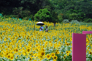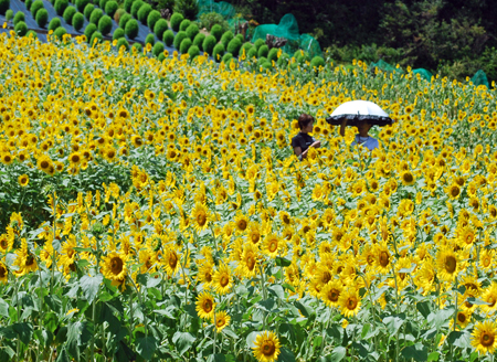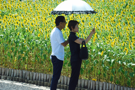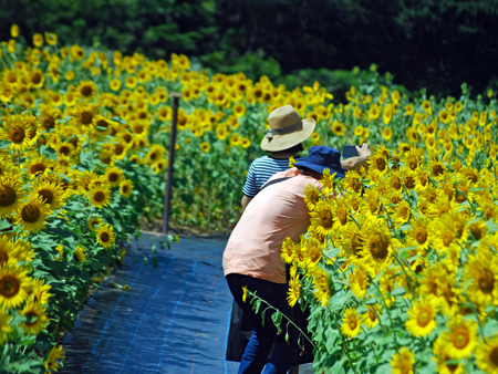 先日もう今年のひまわりの見納めと思っていたら志摩市の観光農業公園が31日〜8月15日まで開園とのニュースが流れた。何か得をした気分で朝早く家を出た。観光客もそこそこ見えていて夫々がカメラにおさめていた。もうひまわりも今年の見納めか?