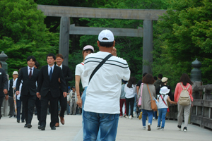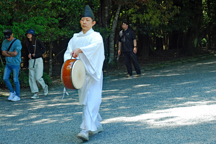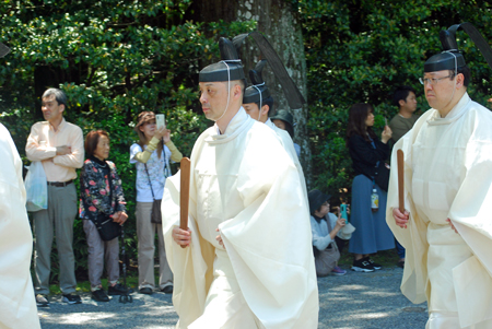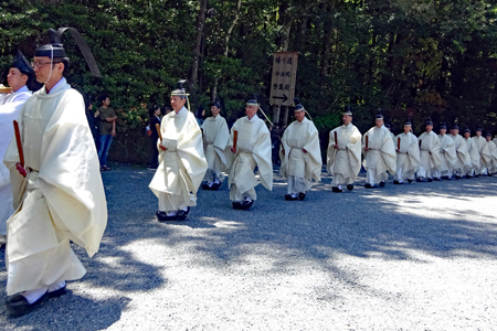 昨日の雨とは打って変わって今日は青空に白い雲がとってもおしゃれに見える。その空のどこかに天女が住んでいて羽衣をまとってふわりふわり浮いているようです。伊勢神宮内宮では正午から神御衣祭(かんみそさい)が行われていました。その都度神宮の歴史、文化、神話等々興味深く学べる機会を与えられる幸せを嚙みしめている私です。