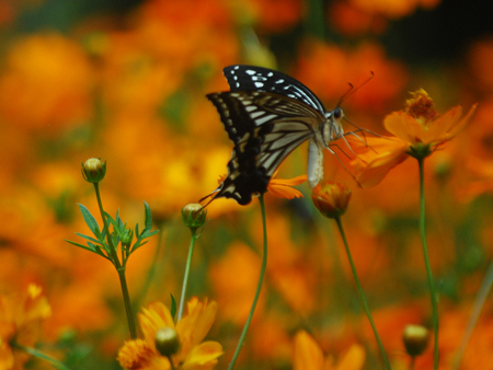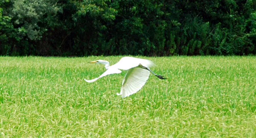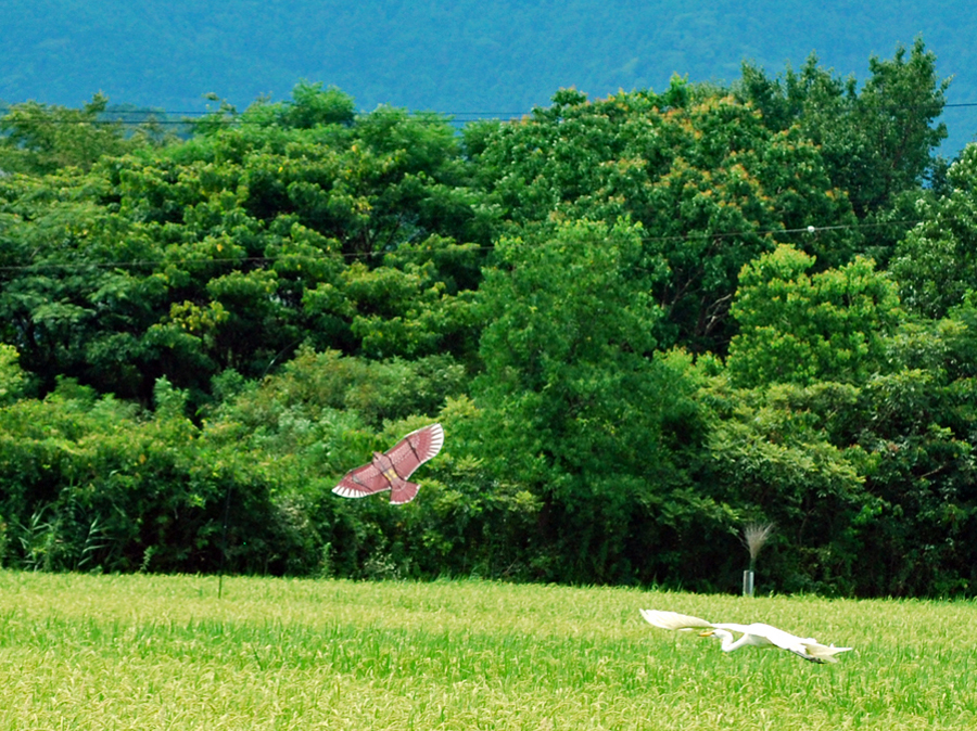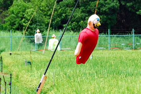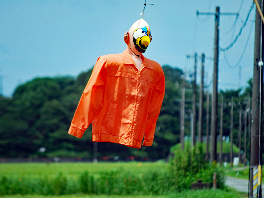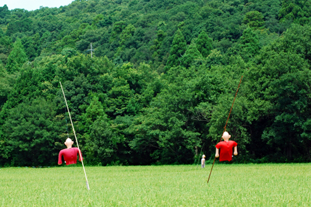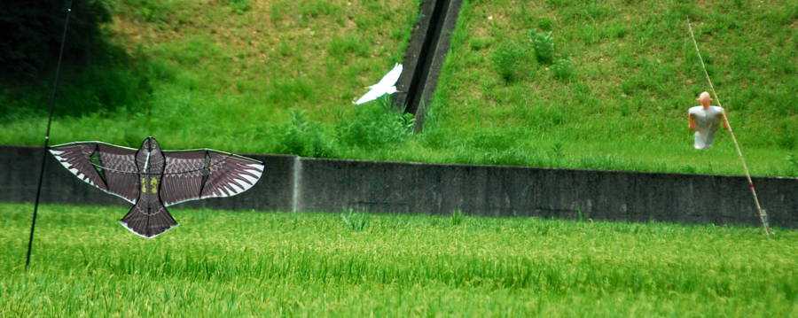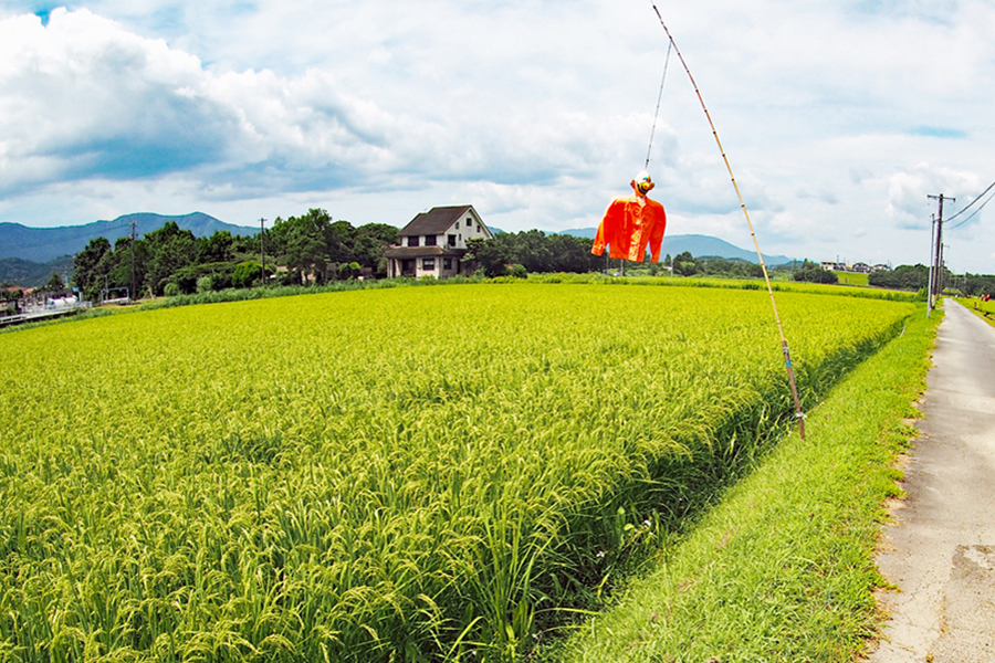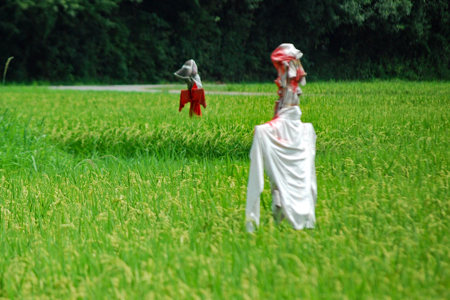 | 昨日の中日新聞にキバナコスモスの記事が出ていた。この時期は朝なるべく早く近場で短時間できり上げるという条件を自分に課して行動することを心掛けている。花の広場はワンちゃんを撮影する方とカメラを持った男性一人に出会ったのみで早々と切り上げるべく県道から下の道を走った。静かな田園風景の中でひときわ案山子が目に留まった。豊作を予想させるように稲穂がたわわに実っていた。どうか無事に台風などに出会うことなく刈り取りが出来ますように祈りながら帰路についた。 |