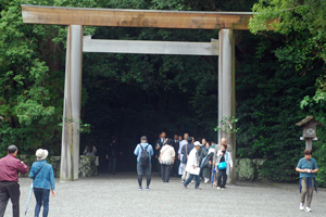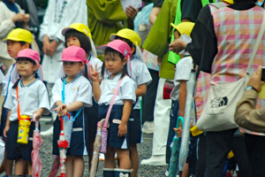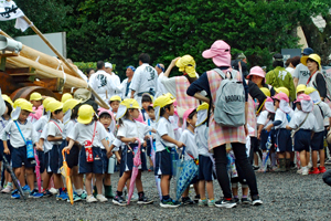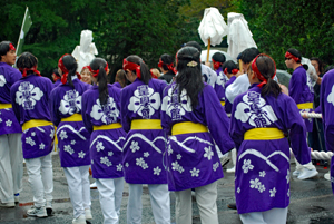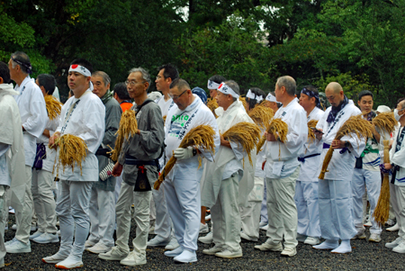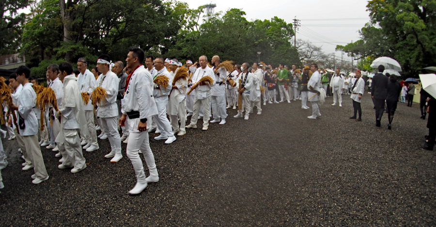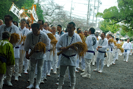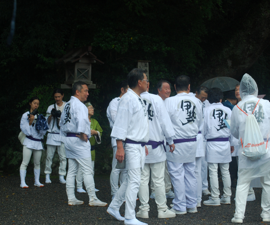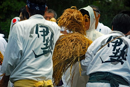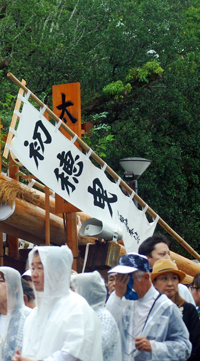 15日は朝から雨模様で気持ちが揺らいでいる間に時間が進みやっと現地についた頃は祭りは終盤に差し掛かっていた。市長さん初め鈴木氏等が鳥居の前で出発を待っているところだった。