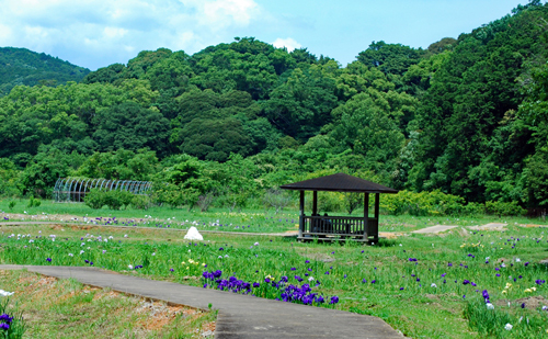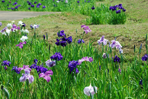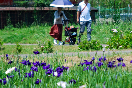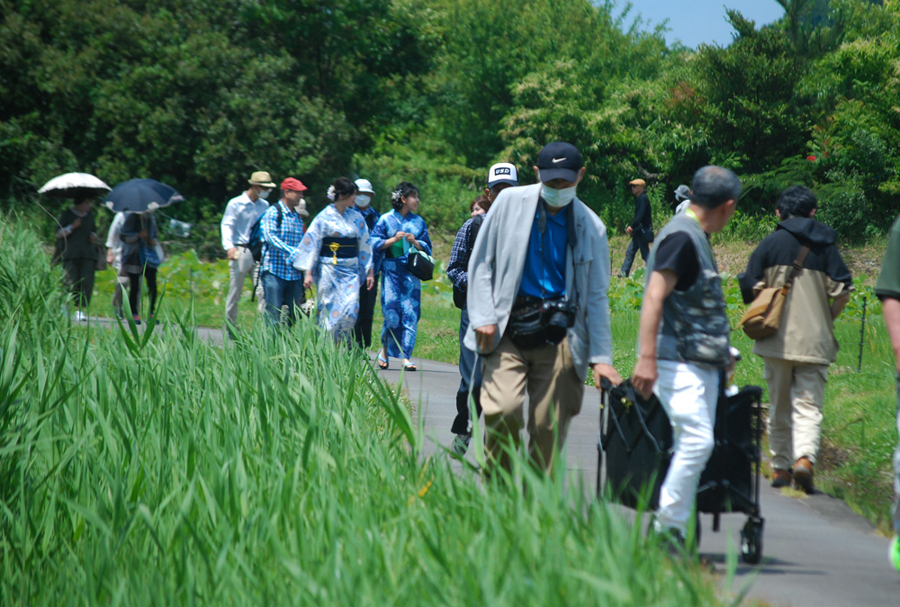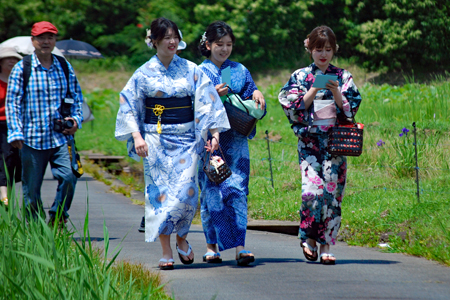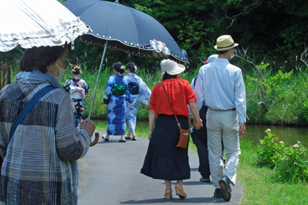 二見「ロマンの森」二見の花菖蒲園で写真グループの撮影会らしい人たちに出会った。浴衣姿のモデル嬢や知人もいた。