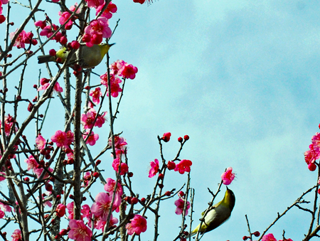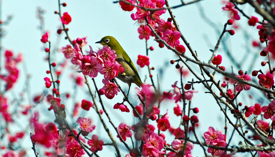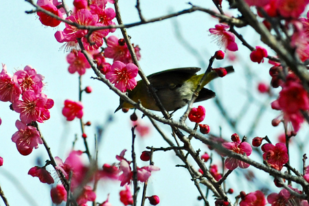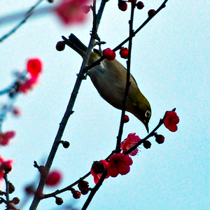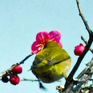 写友から斎宮の紅梅がほぼ満開との情報があり早速現地へ、、、曇天ながら時々青空が覗き沢山の小さなメジロが飛び交っていた。残念ながら私の力では飛んでいる姿をなかなか撮れない。それでも可愛くてその姿を追いしばしの憩いの時間を慈しんだ。移動して菜の花畑へ向かう。次から次へと電車が通過するのはありがたい。今年も一歩又一歩心を外に向けていつの時も身近な風景に眼差しを注いでいきたいと思う