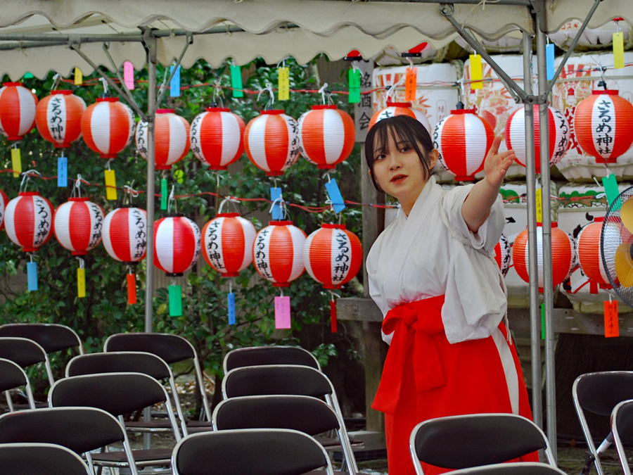 技芸、神楽、鎮魂の祖神と仰がれる天宇受売命(あめのうづめのみこと)のお祭りです。 パンフレット引用