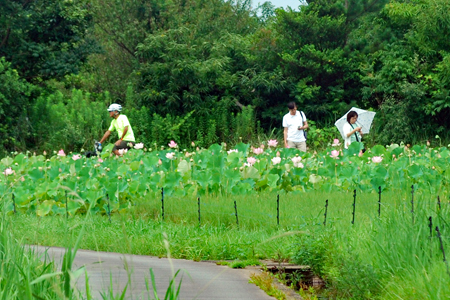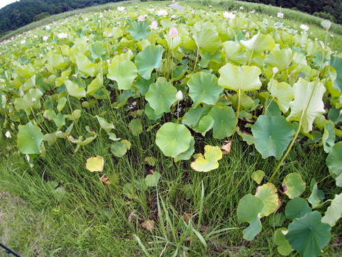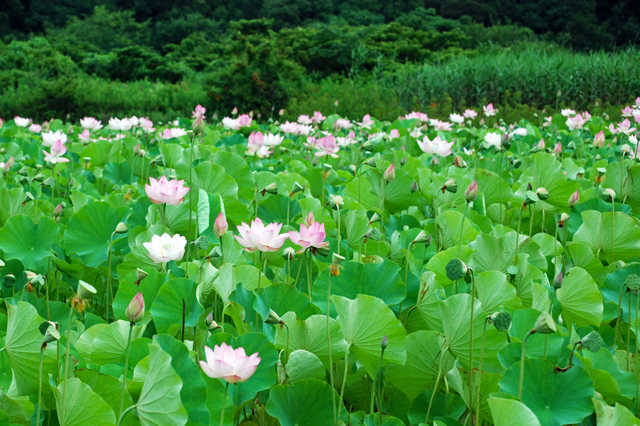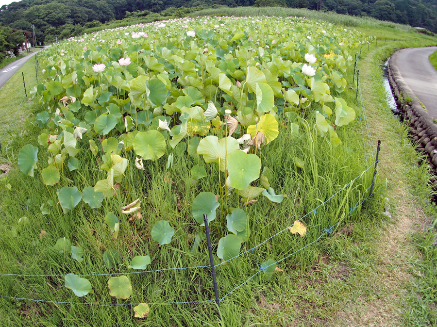| やっと梅雨が明けた模様である。「蘇民」へ買い物のついでに裏の田んぼを覗いた。まだまだ大賀蓮が大輪の花を咲かせておりトンボや蝶が飛び交っていた。今年の見納めかと思いしばしたたずんで眺めていた。梅雨特有の熱気で木々の緑は完熟に大地を湿潤したであろう。しぜんというものは、決して静穏な営みに終始するものと思いきやその内部に狂乱の意思を潜めているのだということを覚えさせられた。季節は夏へとたかまっていく。熱中症のみならずコロナやインフルエンザなども流行しているとか、、、激発するものを懸命に抑え込んでこの異常気象の夏をやる過ごしたい。 |