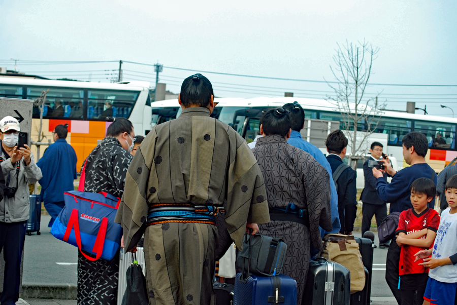 伊勢神宮奉納大相撲大会のため沢山の人気力士が五十鈴川駅へ降り立った。映像でより和服姿の力士を見るのは初めてでその大きさと人気に圧倒された。今日は初夏のような陽気で冬と春の撃列な戦いに中で桜もなかなか開花できなかったがもう間もなく満開となるでしょう。