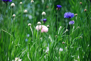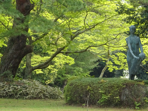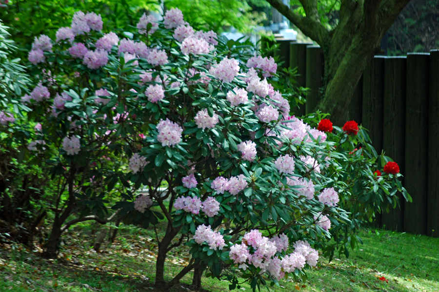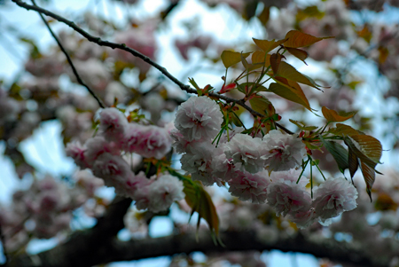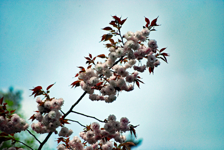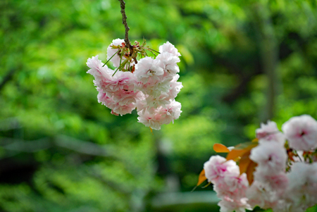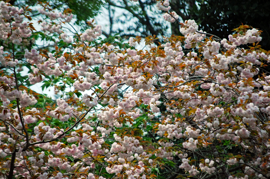 | あっという間に桜が散って葉桜になる時間の速さにびっくり仰天している。もうそろそろ石楠花がみごろか?と思い伊勢への買い物の帰り寄ってみた。美術館庭園に咲き残っていた「さと桜」は淡いピンク色をしていて何ともはかなげな愁いを帯びているようで魅了させられた。シャクヤクはこれから次々咲いてくる気配であった。それにしても落花は雪が舞い降りたほど白く匂やかでありそして意気高らかな葉桜の時は、密生した葉の中から頬をなでる風は緑風となって体中が浄められ生き返ったような思いにさせてくるれる。矢車草やハナミズキ等々、、、目を楽しませてくれる時間はもうそこまで来ている。 |