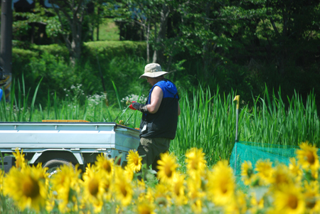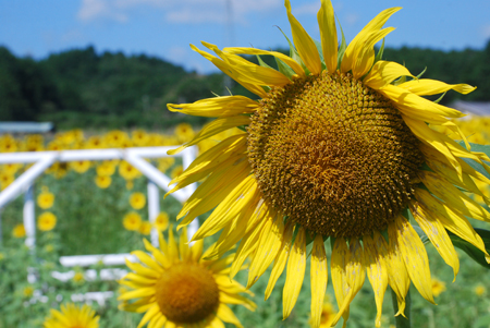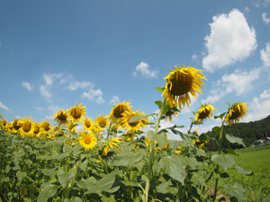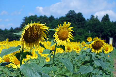 早くも「ひまわり」が満開という新聞記事を見て今日は、いつもより早い時間に出かけ、もうAM11:00過ぎには帰宅していた。連日35度を超える気温でTVが盛んに熱中症の注意を呼び掛けている。自ずと用心深くなる。自然はいつも甘美な美しさや、やさしさを与えてくれると思えばこのように時として人を突き放すときがある。破格、変調も又自然の姿なのだを教えられている今日この頃の私です。