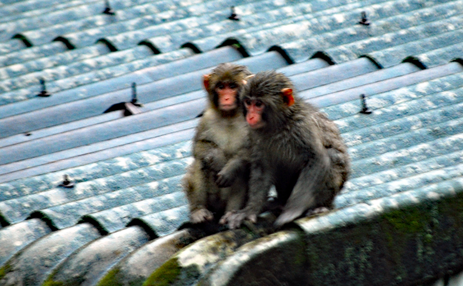 | 今朝から雨が降り続いている。昨日夕刻大きな角が見えて慌ててシャッターを切った。鹿の出没である。今日はお昼前子猿3匹を連れた猿が現れた。この前の猿であろうか?子猿は隣家の倉庫の屋根に移動していった。我が家も夫亡きあと屋根を修繕したことがない。それでも屋根を見ると実父のことを思い出す。世の中の父親というものは家屋の屋根に似ていると思う。冬なら積雪の重さに耐え夏は炎熱と果敢に戦い、災難にめげず不測の出来事を切り抜けて一家の命を抱きしめてくれる父親の姿に、、、、 屋根のない屋根になって生きてきた我が過ぎし歳月を最近特に思う。年のせいなのか?、、根こそぎ消えて数年1株だけ残ったガクアジサイが雨に打たれていっそう華やかさを増し心を和ませてくれている。 |