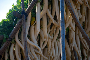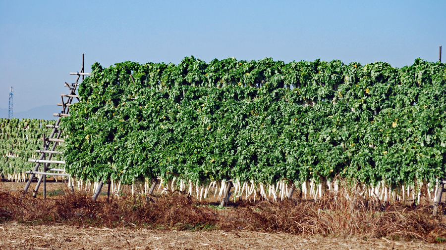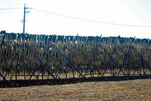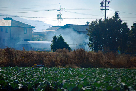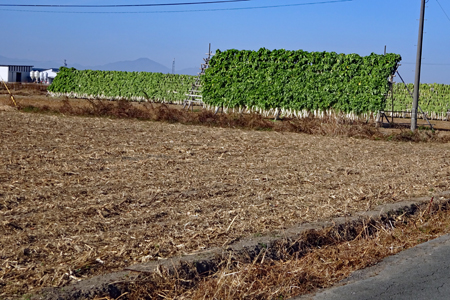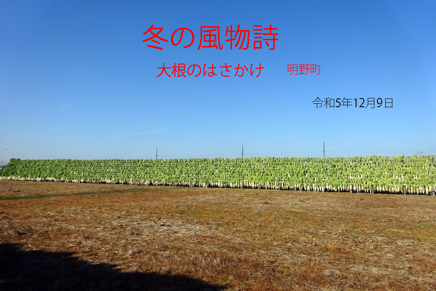 今年も残すところ3週間余となってしまった。年末になって何故か訃報が届くようになり喪中はがきと重なり悲しみと淋しさを味わっているこの頃である。1年に一度必ず会おうと約束しながらおたがいに年齢を重ね、つい約束を果たせぬまま永の別れをすることもあろう。多忙の一時を割いても会うべきは会っておこうと思い立ち長くご無沙汰の友を訪ねることとした。初冬の風物詩と言われている大根の「はさかけ」が始まっていると写友から聞き松阪へ向かう途中寄り道をした。人影はなかったものの車を走らせ周辺の景色をカメラにおさめた。