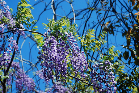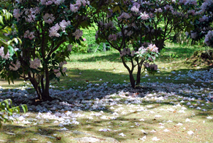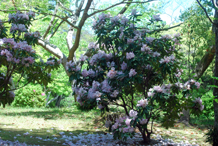 | HPのサークルへ出かける通り道で野生の藤の花を見つけた。誰に手入れされることもなくその花は力ずよく朝日に輝いていた。もうこちらの石楠花は旬を過ぎたようだと写友が言っていたがちょっと足を向けた。休館日なので掃除のおばさんがいて落ち葉など綺麗に清掃していた。花木に出会うといつもそこにその花を生かしたもの、人、価値観等に思いを巡らす。花木は人間の歴史そのものだと思う。次に出会う花が楽しみな季節が巡ってきた。 |