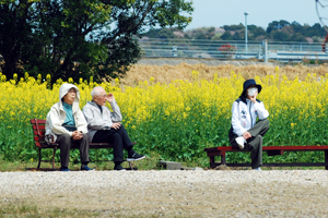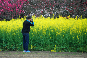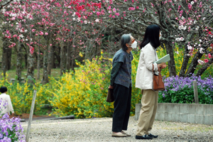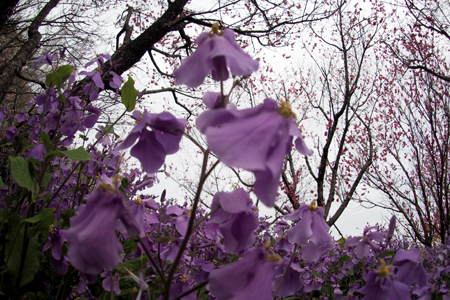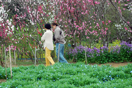 前回訪ねた時は殆ど蕾だったが今回は満開で黄色やピンクや紫が色鮮やかに咲き誇っている。曇りながら沢山の人が訪ねて来ていた。中には写真の撮り方を伝授してくださったり珍しそうにカメラのことを訪ねてきたり知らない人びとの交流の場でもあった。