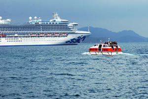 令和7年24日 久しぶりの豪華客船ダイヤモンドプリンセス入港 3000人の観光客と言われている。市内もかなりにぎあった模様である
