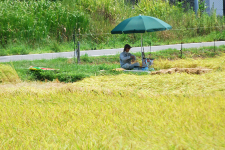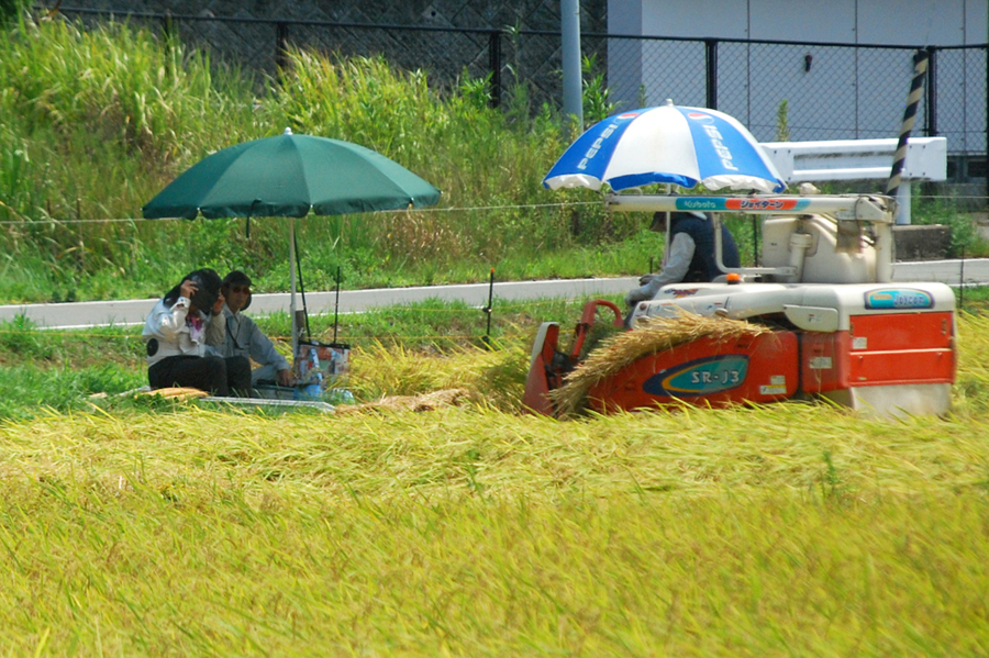 | いつも日赤へ診療の時通道でこの花が咲く時だけはゆっくり走って楽しんでいる。令和の米騒動がなければ余り田んぼをゆっくり見ることもないが施設に入っている姉を面会する時何ンとなく車を止めてシャッターを切った。風がきつかったのか?雨が邪魔したのか稲がすっかり倒れていた。私達の子供のころからの農作業しか知らないので農耕器具の進歩に只々驚いている。 |