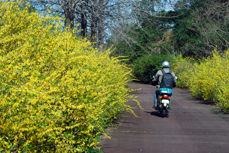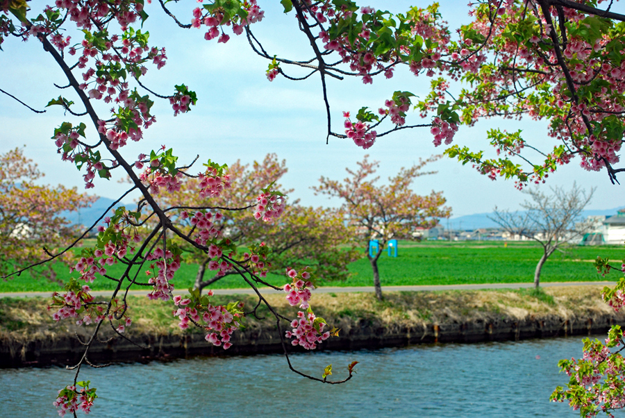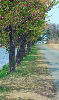 | 娘夫婦とイオン明和でおち会い買い物をしての帰り笠松の花街道へ連れて行ってもらった。一週間前には満開だったから多分葉桜は承知の上で花筏は、どうか?と、、、残念ながら風がきつく早々に車の中へ、、、一シーズンで同じ場所へ二度くることは初めてで満開の時と人っ子一人いない寂漠とした景色を見て人の人生と重ねて感慨深いものがあった。帰り一人ゆっくりアリーナの花の広場を散策した。黄金色に輝く菜の花やこれから咲こうとしている花桃、此処は独りでも明るい未来を連想させてくれ生きる源をいただいた気分になった。 |
