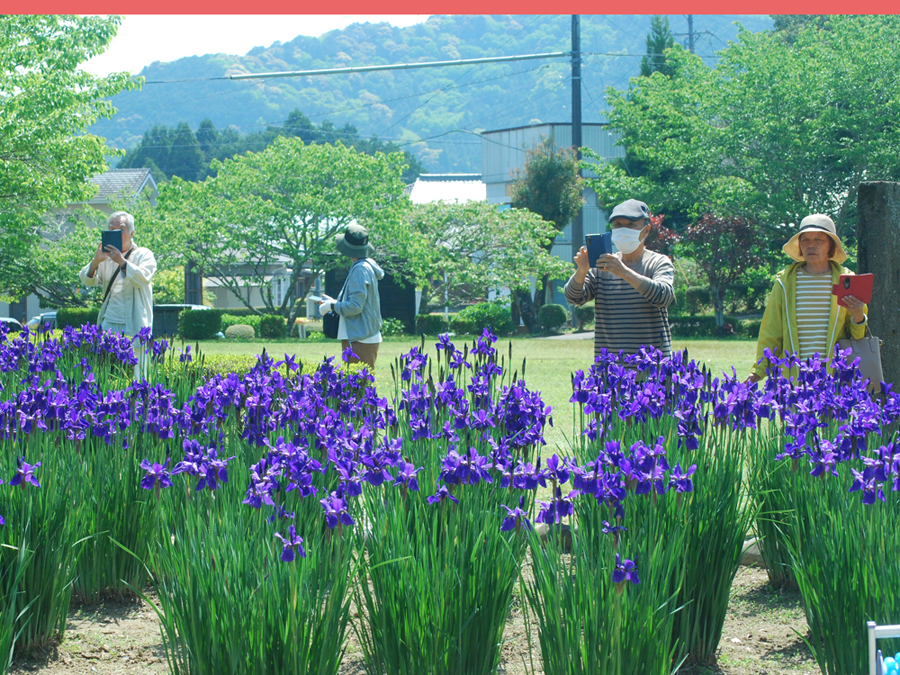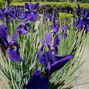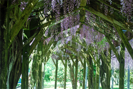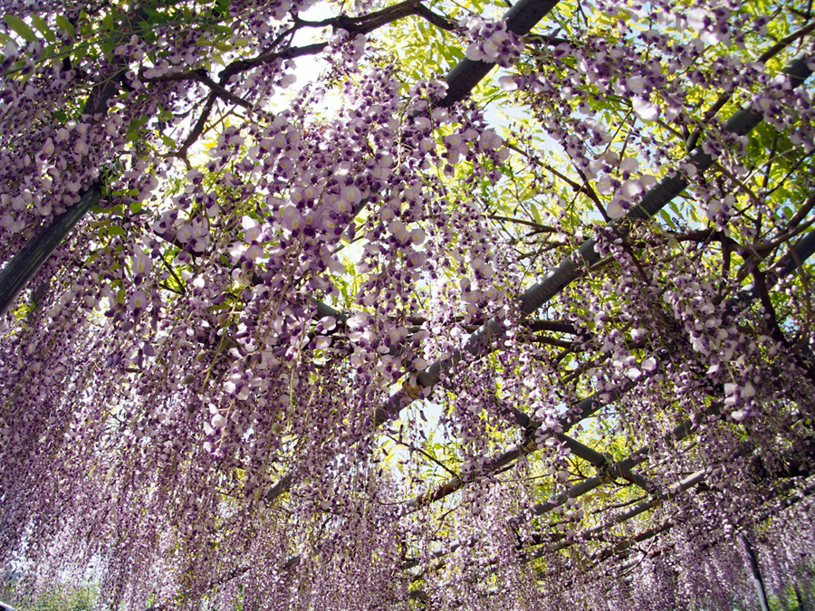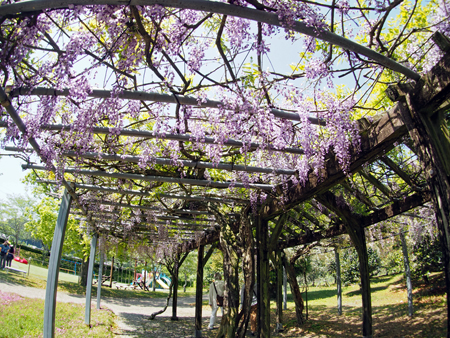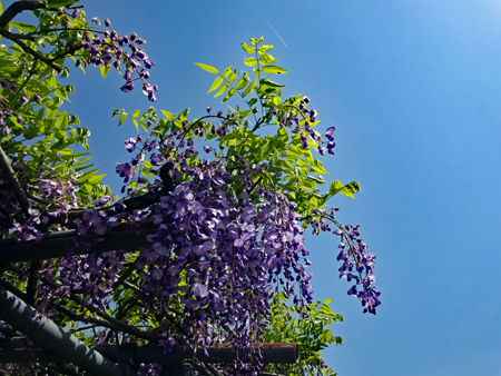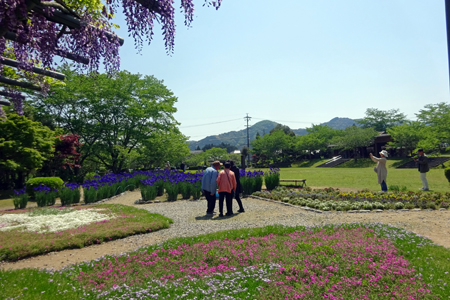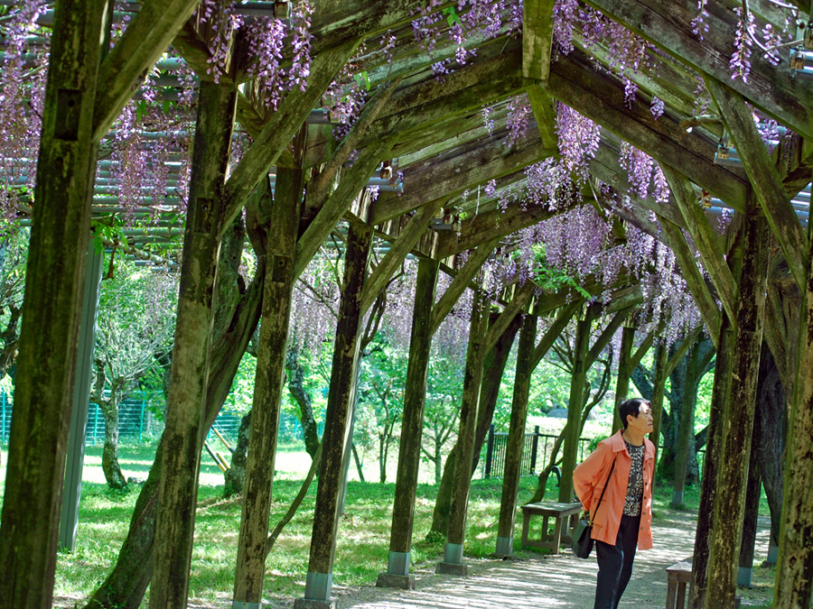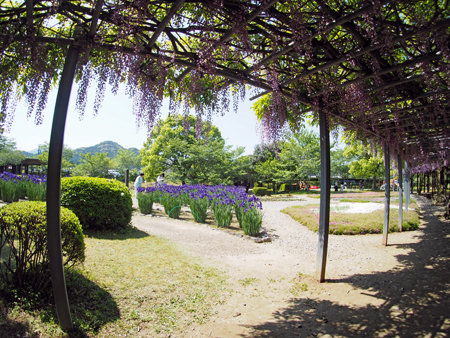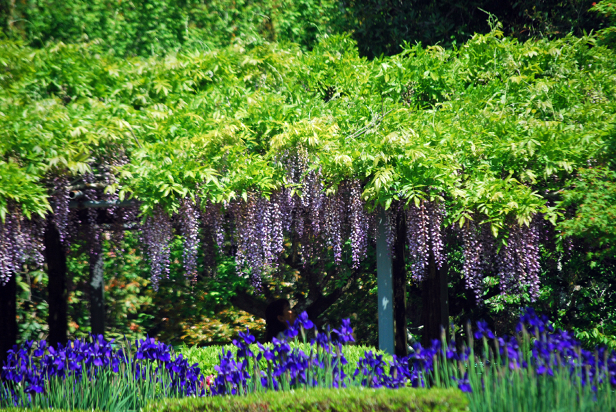 全長60mの藤棚は有名で何年か前写友たちと尋ねたことがある。その時の記憶と比べれば下がっている花房が少々短く感じられた。芝さくらは終わっておりアヤメが紫紺鮮やかに咲き誇っていた。寒いけど暑い汗が出てきたと思えばすぐ寒くなってくる。日本列島は、冬と夏が混在しているようで気温に翻弄されながらも今日も私は生きている。
