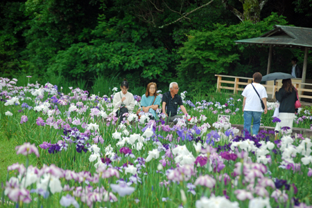 | 今日は、月1回の写真の例会とHPのサークルの例会と重なってどちらも欠席できない事情があった。HPの会場である活動センターが伊勢市のかいはつ計画の中にあり今日をもって私達は来週から別の場所に移ることになっていた。午前の時間を利用して前の外宮の勾玉池へ行った。花菖蒲は、今が見ごろと言えるでしょう。丁度雨の合間で沢山の観光客の出入りが激しい。やはりこの花は梅雨に一番似合う花だと改めてた。 「昼ながら 天の闇なり 菖蒲園」 山口 誓子」 |