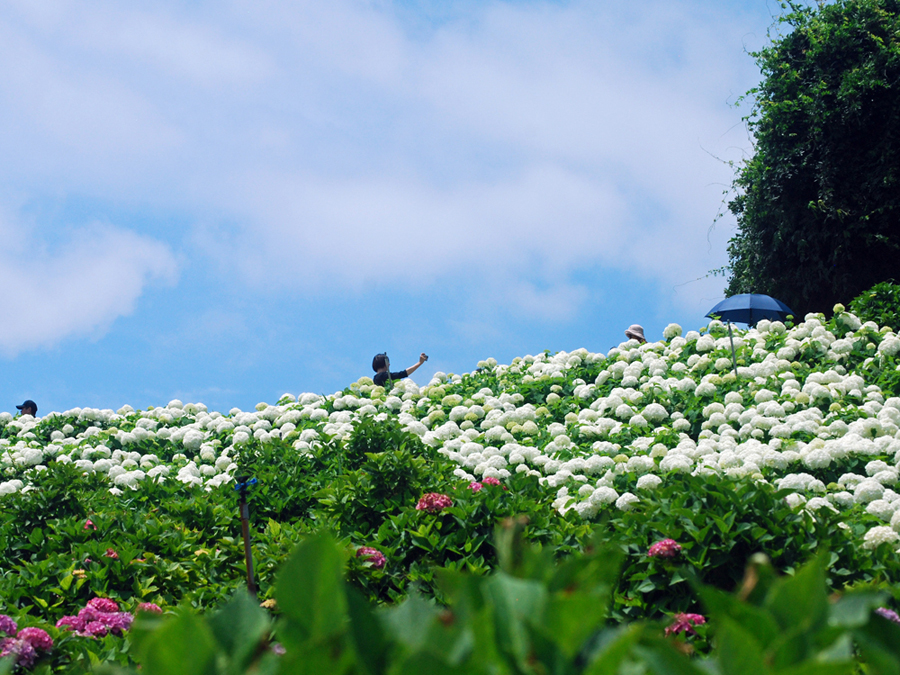 季節の花だより「紫陽花4」と大道芸じょんがら 津市かざはやのの里