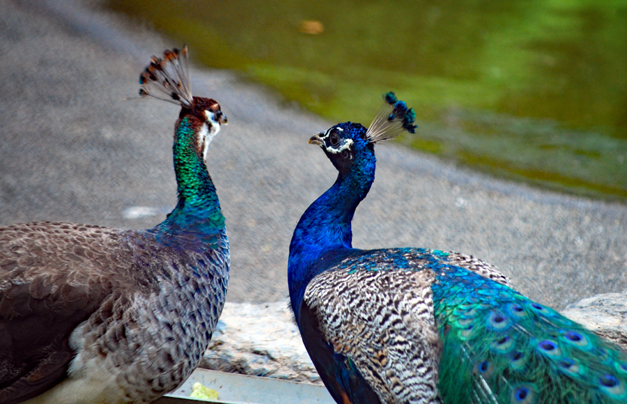 考えるヤギ」と「恋の季節を迎えた孔雀」 鳥羽市立図書館横