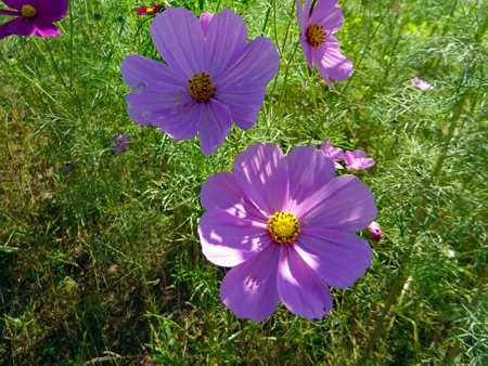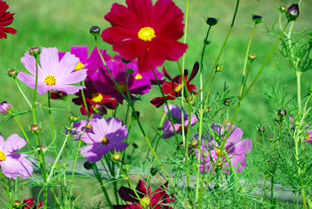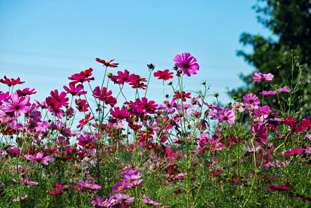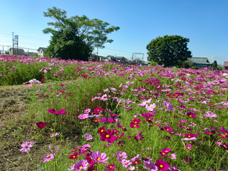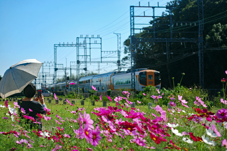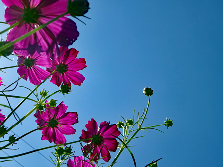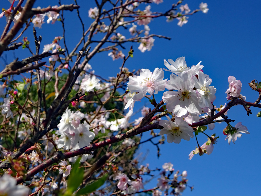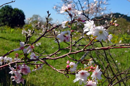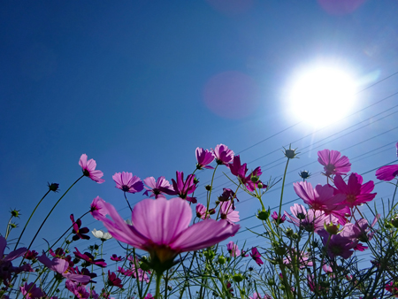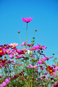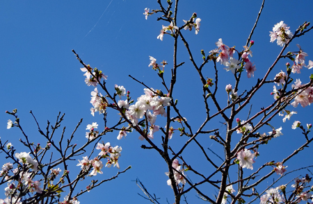 コロナ禍が治まり始め緊急事態宣言が解除された故か観光地は少しづつ人が出始めてきた。抜けるような晴天に誘われ明和まで出かけた。斎宮駅周辺はコスモスが満開で近鉄電車がひっきりなしに通る。「紅白も淋しきものよ秋桜」誰の俳句だったかついぞ思い出しか ねたがそんな句が頭をよぎった。帰り道あまりにも空がきれいだったので朝熊の公園へ降りてみた。見上げるほどに大きな花は「四季桜」というのだろうか?慢心に花をつけた春の桜とは異なり秋空に映えるその花はコロナ禍の後だけにまた格別なエネルギーを与えてくれたのです。 |