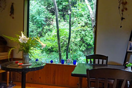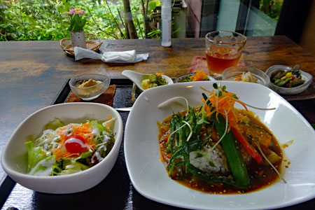 | 写真サークルの師「石井清」氏の写真展へ出かけた。会場はしゃれた雰囲気の静かなカフェ、、、師は海をテーマにした作品が多い。今回の写真は私は行ったことがないタヒチの景色や人物の写真で珍しくもありその作品群に見入った。オーナーの勧めでランチをいただくこととなった、野草を沢山使っていて素朴で爽やか、、、客は私一人だったのでゆっくりオーナーと話が出来一緒に写真を撮ったりおしゃべりをして楽しく有意義な時間を過ごした。人は日常の忙しさにかまけて何事も無関心になりがちだがふと立ち止まって無関心なるものを捨ててみるのもいいではないでしょうか。 |