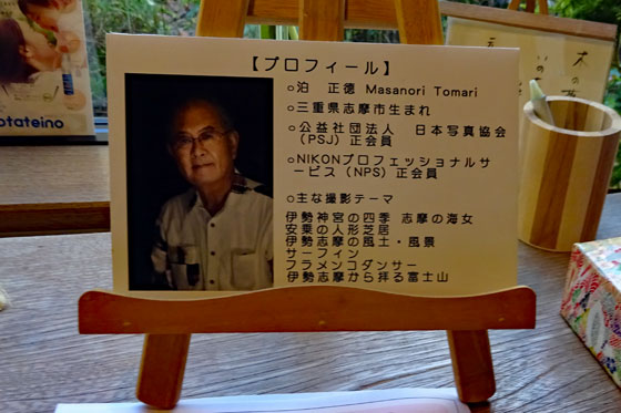 志摩市在住の写真家『泊正憲氏」の写真展へ友人を誘って出かけた。自然いっぱいのたたずまいの店は玄関わきの巣箱にメジロが飛んできてみかんを食んでいたりしてとっても心和む雰囲気の中で氏の力作をゆっくり鑑賞できた。