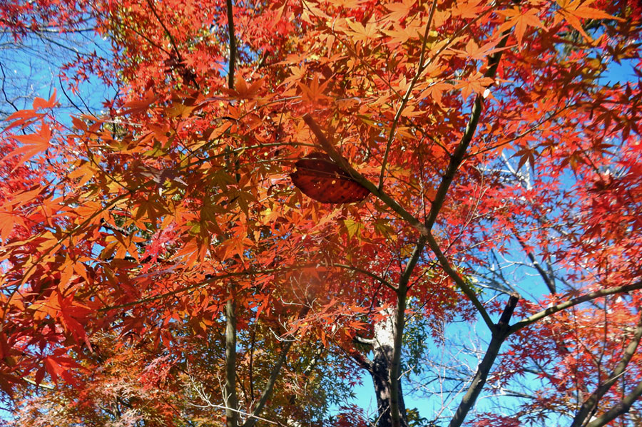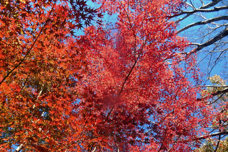 | 今日は「勤労感謝の日」なんと素敵な恵まれた天気でしょうか。 もみじの「赤」に魅せられたひと時を過ごす。自然は何と素晴らしい贈り物をしてくれるのでしょう。仕事をして「生きる」ということが最も尊いものだついつも思っていた。自分に与えられた生命の時間を充実して生きるという自覚が最も尊いことなのだとあらためて思い起こされた祝日であった |