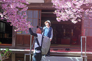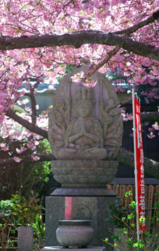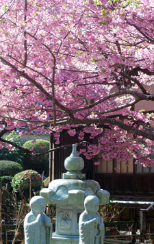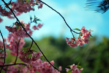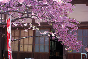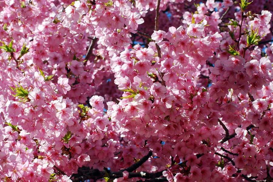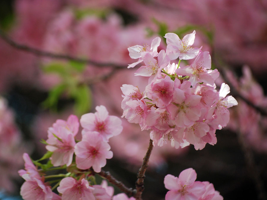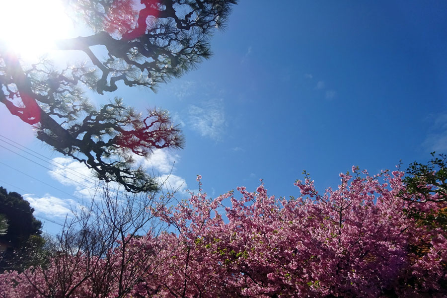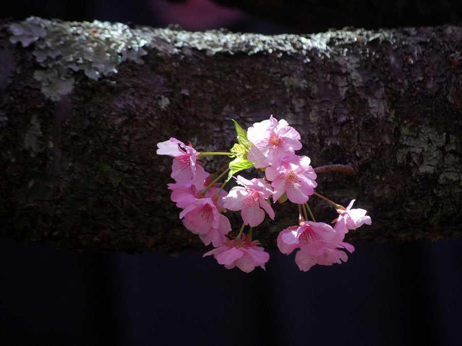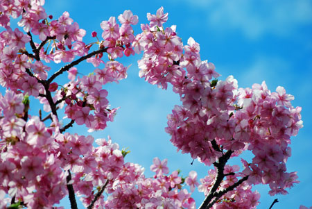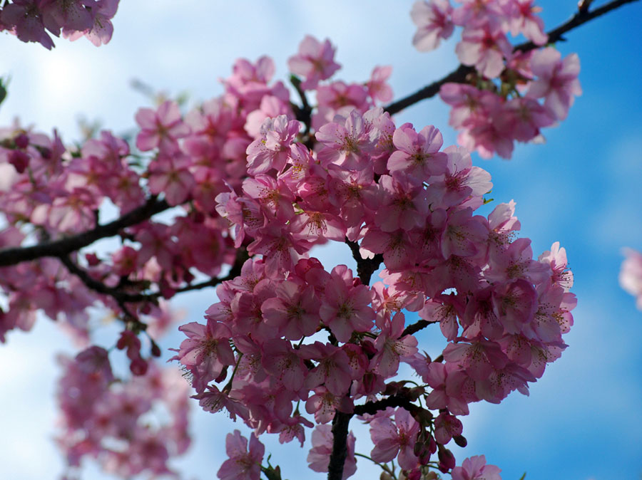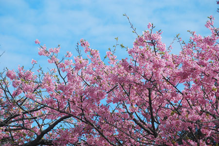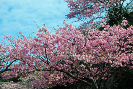早咲きの桜が満開だとの写友からの情報で今日HPサークルの帰り寄ることにした。朝は曇天だったのに現地へ着いたらすっかり青空になっていて、なんと幸運なことだと一人感激に浸った。花はすっかり満開でここだけはピンク一色に染まってまるで別天地のようでもう春なんだと実感