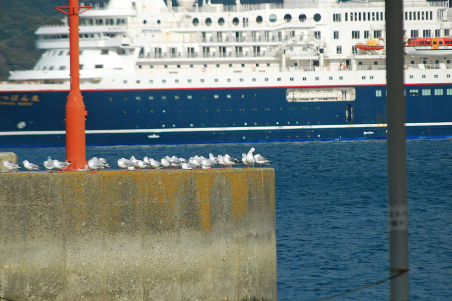 相差の神事の帰り駅前を通った時にっぽん丸の姿が目に留まった。本年最初の豪華客船の入港である。到着時間には観光協会等によるセレモニーがあった模様だがいつも時間がずれて参加できない。新しい年の初めの旅が思いで深いものになりますように、、、祈りながら。新しくできたミジュマル公園も家族ずれでにぎあっていた。