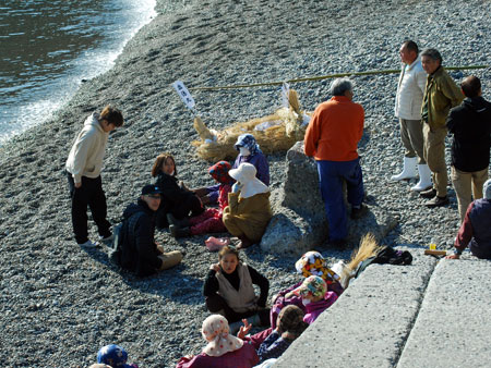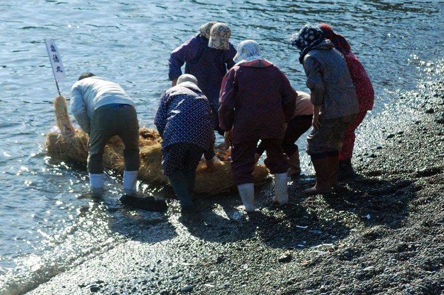毎年1月17日に当地の正月神事で神々をわら船に乗せて送る神事で町内で各1名女性が必ず出てこの行事に参加するのだと聞いている。年々知っている人が少なくなっていくのが寂しい。