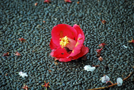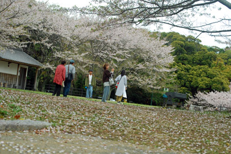 祭りの帰り城山公園に寄ると桜は散り始めていてピンクの絨毯があちこちにできていた