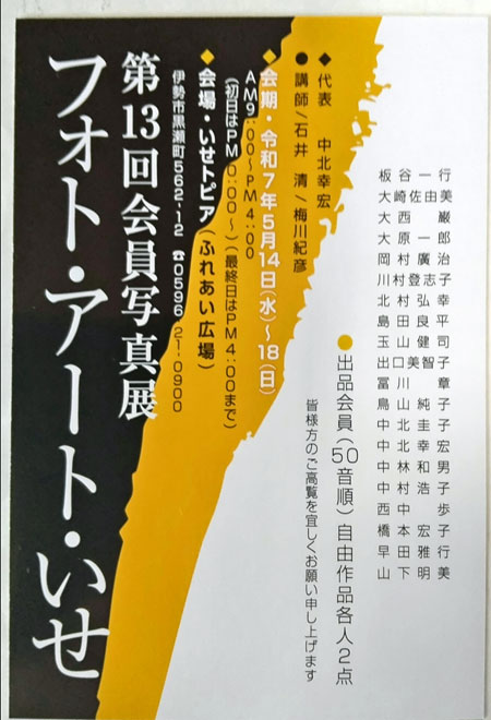 5月14日から18日まで「伊勢とぴあ」で開催された。以前なら沢山友人が見に来てくださり応援をいただいたが年々奇関に入り寂しくなった生きるとはこういうことだと実感している。昨年度に伊勢市展での入選作品も飾っていただいた。